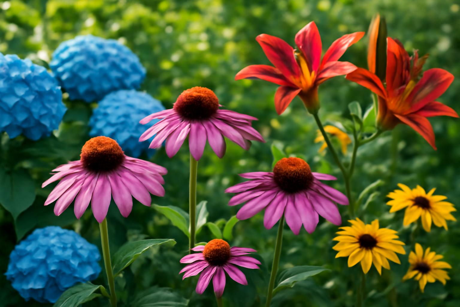 - Hortenzia és árnyékliliom: Félárnyékos kertbe tökéletes, romantikus hangulatot teremt.