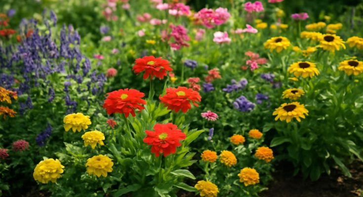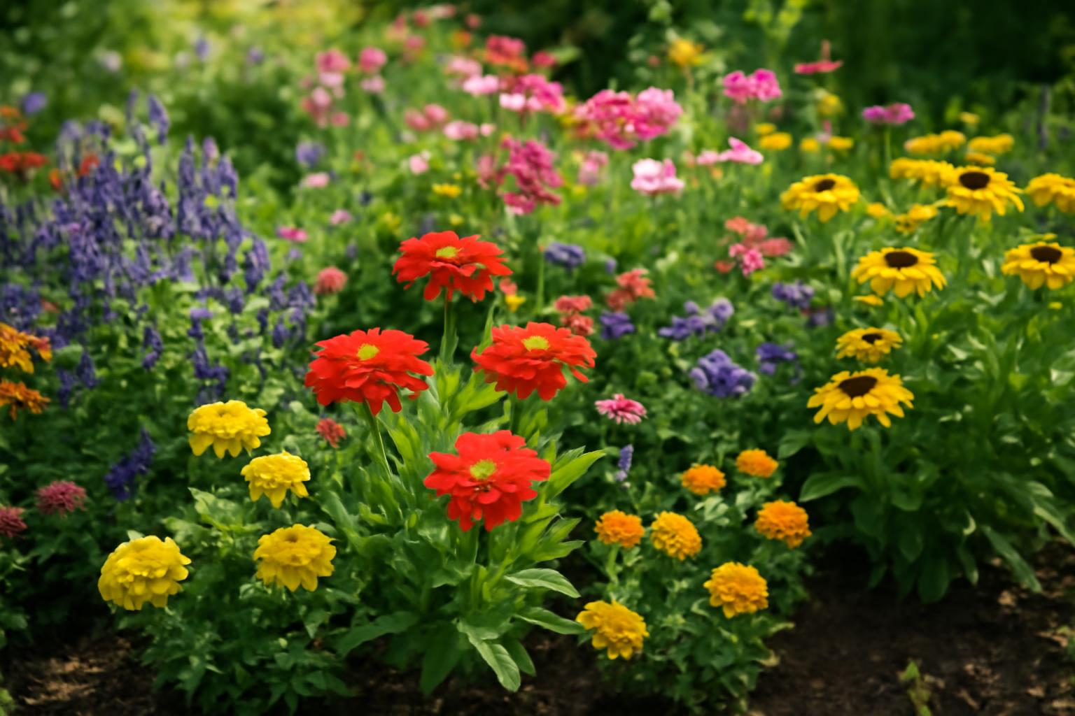 - Zinnia (legényrózsa): vibráló színeivel és gyorsan fejlődő habitusával kedvelt.