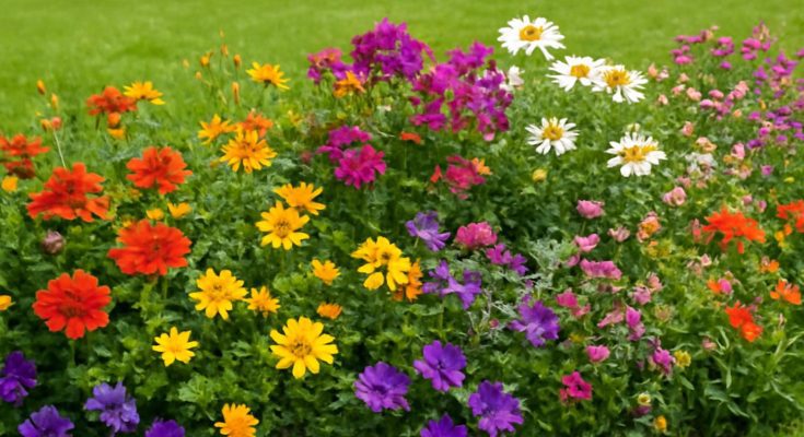 Tippek színes virágos gyepszőnyeg kialakításához